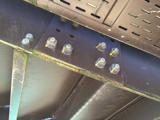 Paint marks crack for visual indication of loosening or tampering of bolts and parts