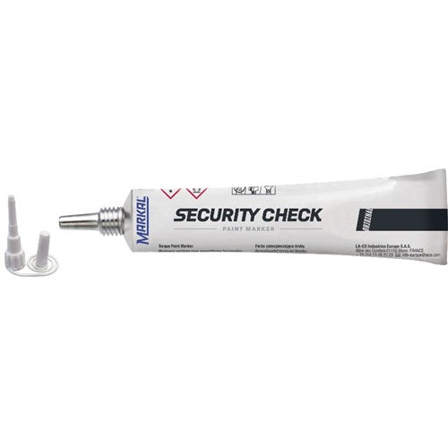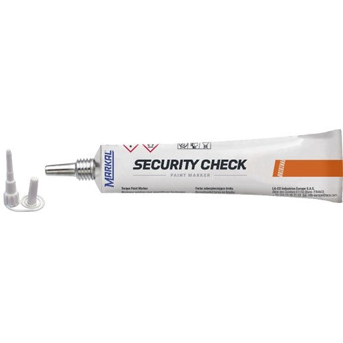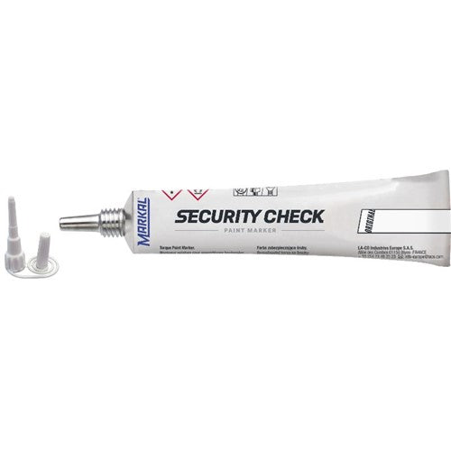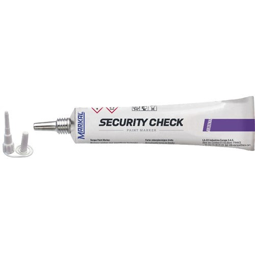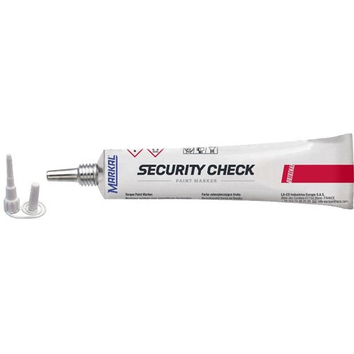 Security Check Paint Marker is perfect for indicating tampering or loosening of bolts or parts, Markal Security Check paint provides an easy-to-read visual indication. The non-drip formula easily applies across bolt threads and cracks when loosened.