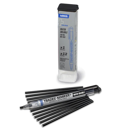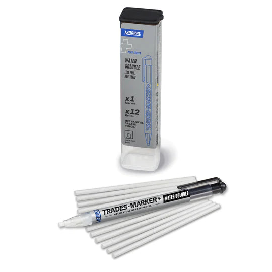 TRADES-MARKER WS is a Water Soluble refillable, all-surface marker that leaves a removable mark and is safe for all surfaces. Marks can be wiped away easily with water.